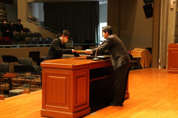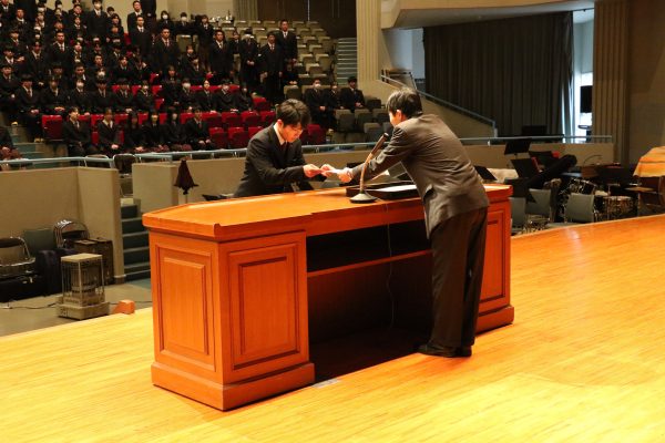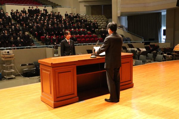 飯盛同窓会会長は、広陵高校では勉強に部活動に頑張って来られた。立派に成長したと思う。今後は皆さんそれぞれいろいろな道に向かわれるが、これから長い人生、大人になる勉強をしていかなければならない。いろいろなことが待ち構えている。楽しいことはもちろんたくさんある。苦しいことも悲しいこともたくさんある。いろんな壁にぶつかることもある。立派な大人になっていくことを考えてください、と挨拶をされました。