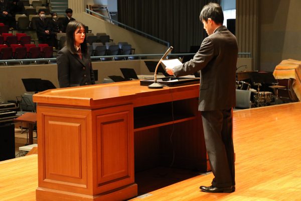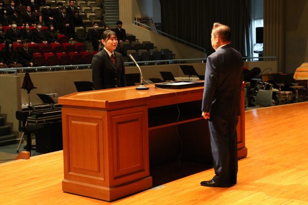 今年度、全国大会に出場した人は33名でした。生徒代表として、村田結愛さんが表彰を受けました。