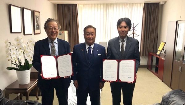 この度本校は、城西大学との包括連携をすることとなりました。 学長、副学長、入試部長、事務局長、同窓会長の4名が来校され、調印されました。