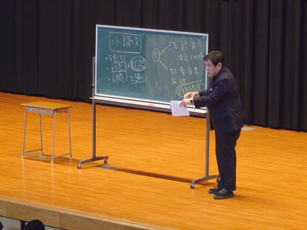 中間考査終了後、代々木ゼミナール 小論文講師の森 直紀先生にお越しいただき小論文講演会を実施しました。