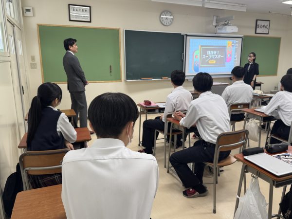 就職対策演習では、はるやま商事株式会社の方にお越しいただきました。企業説明だけでなく、社員の方々がサービス業にどのような覚悟を持って従事しているかなど、貴重なお話を伺うことができました。また、「目指せ!スーツマスター」と称したクイズ大会も行われ、生徒たちは、高校卒業後着る機会が増えるスーツについて、楽しみながら学ぶことができました。