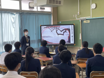 高校の国語で扱うことなどを知ってもらいながら、様々なことを表現してみる活動に取り組みました。物・事柄を多面的に見てみたり、写真を見ながら文章で表現してみたり、言葉で表すことの面白さや難しさを感じ取ってもらえたのではないかと思います。言葉で伝えきれなかったりすることがよくありますが、相手のことを思いやりながら言葉を選ぶきっかけになってくれればと感じています。