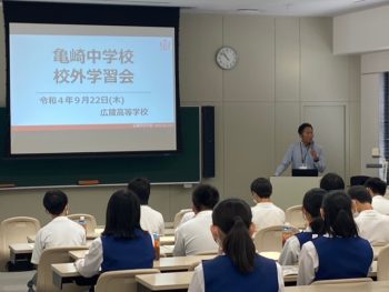 本日、広島市立亀崎中学校から2年生52名の生徒のみなさんをお迎えし、校外学習会を行いました。