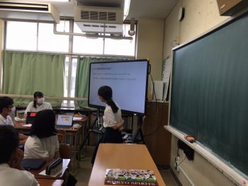 英語の授業では現在完了形を使った自己紹介などのペアワークを行いました。