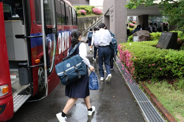 校外学習会ということで口田中学校から来校されました。実際の登校を想定し、スクールバスでお迎えしました。