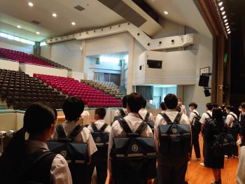 短い時間ではとても廻りきれない本校の広大な敷地、そして広陵生が真剣に授業に向き合っている様子をご覧いただきました。