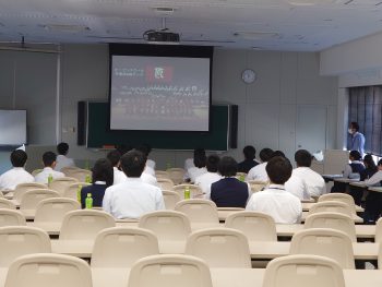 学校説明では、私立と公立の違いに始まり、広陵高校の特色や、高校入学までに学習や日常生活にどう向き合ってほしいかという内容をお話しました。