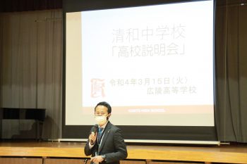 本日、広島市立清和中学校にて、2学年の皆さんを対象に出前授業と学校説明を行いました。