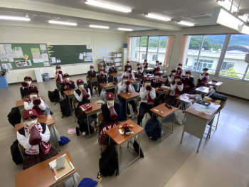 内容は帽子、メガホン、マフラータオルです。 このグッズは野球応援だけでなく、体育祭やクラスマッチ等で使用することがあります。 昨年度より試合を応援できる機会がなく、行事にも制限がかかっている状況ですが、早くこのグッズを思いきり使える日が来ますように。 入学してもうすぐ2ヶ月。すっかりサマになっています!