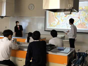 最後に代表者がハザードマップを指しながら避難経路とその経路を考えた理由を発表し、自助・共助についてまとめました。