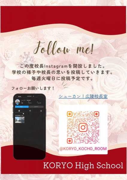 この度校長Instagramを開設しました。 学校の様子や校長の思いを投稿していきます。
