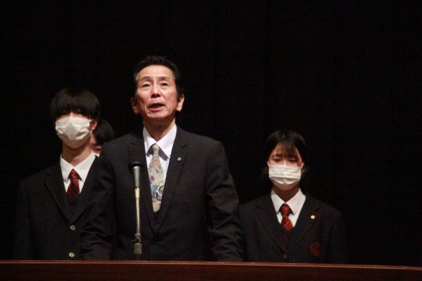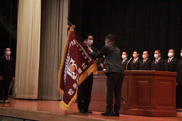 毎日新聞社広島支局長様より激励のご挨拶と、選抜旗の授与をしていただきました。