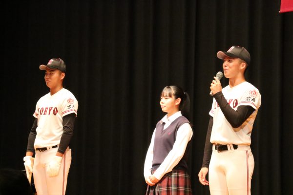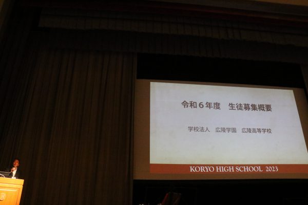本校のオープンスクールは、校内案内や学校説明など、在校生によるボランティアで行っていることや様々な目標を持った1396名の生徒が過ごす広陵の強みは、先生方の面倒見の良さであるというお話をされました。