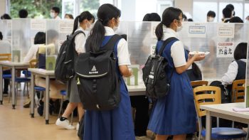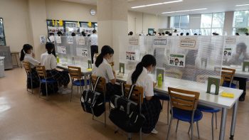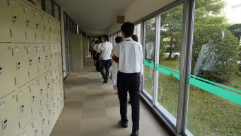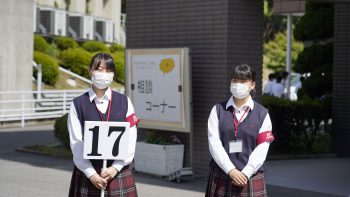 ユニフォーム紹介のあとは、在校生ボランティアによる校内案内・授業見学に向かいました。