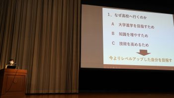 なぜ高校に行くのかという話から始まり、広陵が来年度からスタートさせる新しいコース編成、更に環境を整えて力を入れるICT教育についてご案内しました。