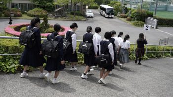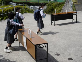続いて、生徒ボランティアの案内で施設・授業見学に出かけました。