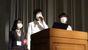 講堂に戻り、生徒会の生徒による学校紹介プレゼンテーションを行いました。