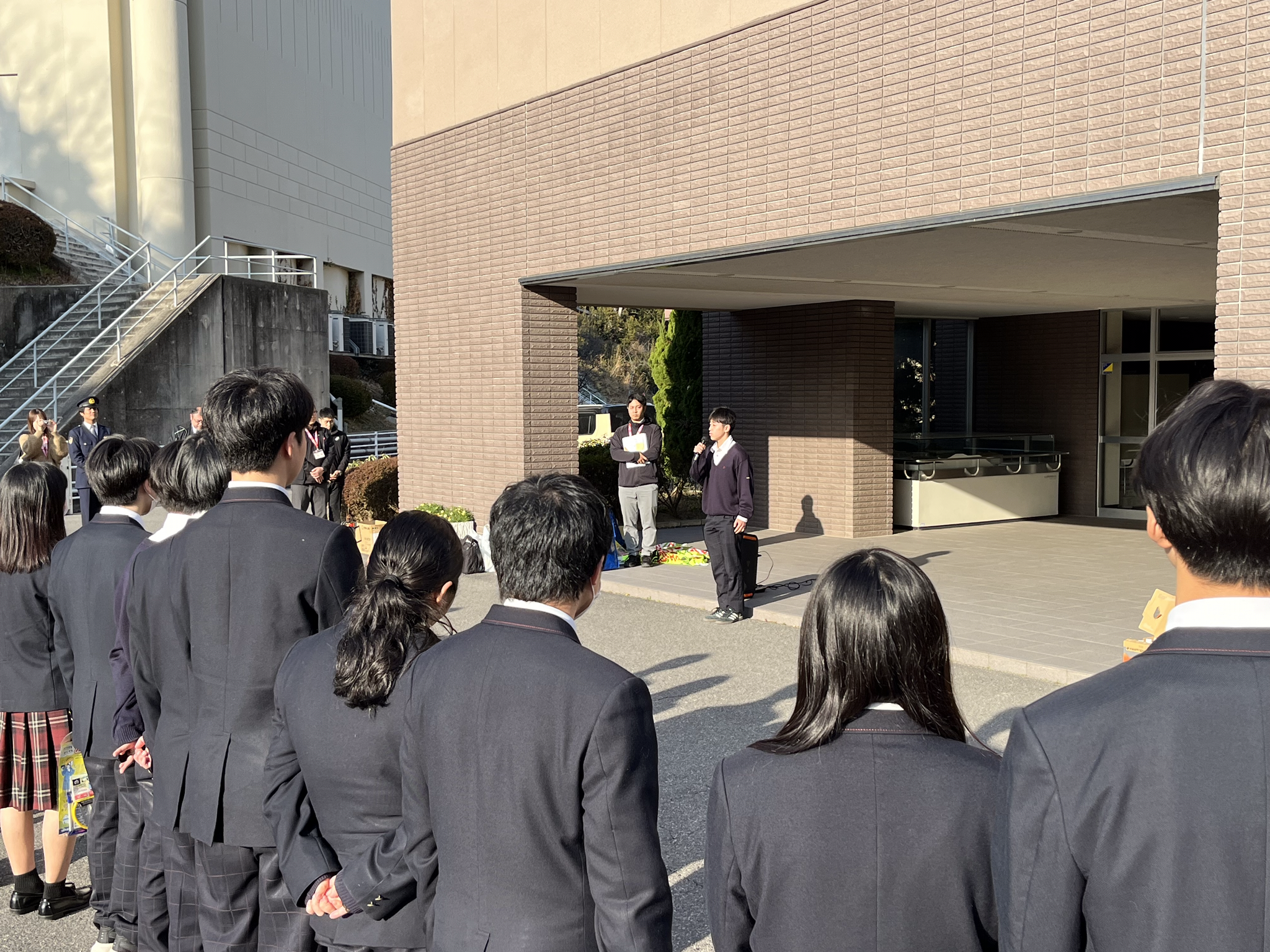 安佐南区役所地域おこし推進課、安佐南警察署、地域の皆様と本校生徒会執行部の生徒が、下校時間に合わせて啓発グッズを配布しながら呼びかけました。