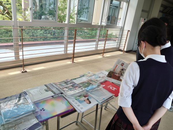 頒布会は毎年期末考査の最終日に渡り廊下のスペースを利用して行われており、県内外の大学・専門学校の学校案内を自由に持ち帰ることができます。