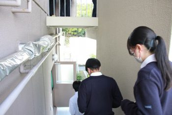 コロナ禍の影響もあり、今回の訓練は避難経路の確認を目的とし、距離をとりつつ避難することを優先して行いました。