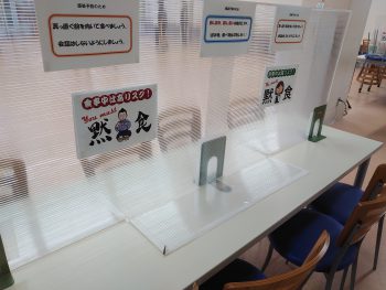 パーティション設置・パーティションや壁面への黙食徹底のポスター掲示