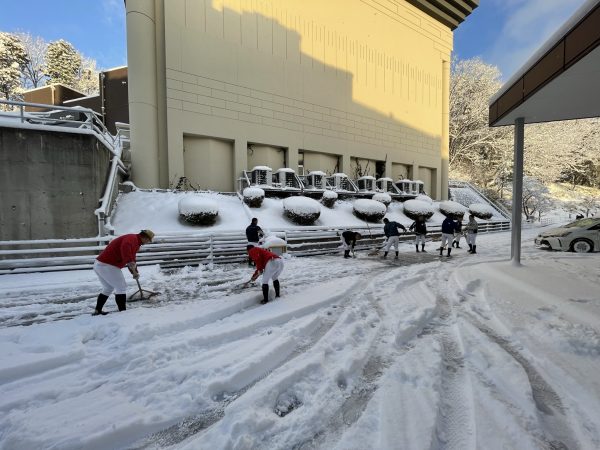 来客スペースや明日生徒が安全に通れるように、校内を硬式野球部の生徒が雪かきをしてくれていました。朝早くからありがとうございました。