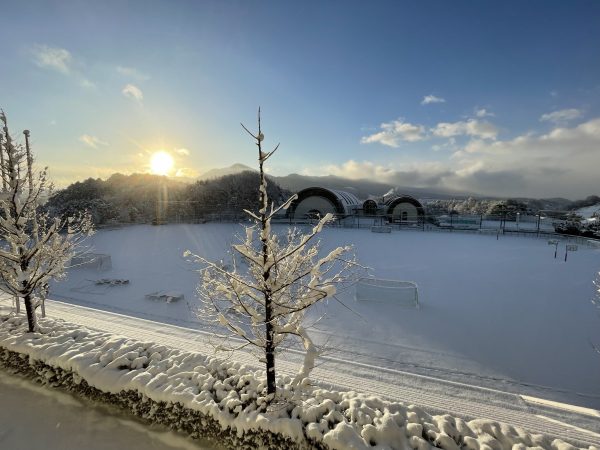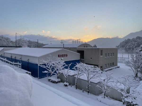 来客スペースや明日生徒が安全に通れるように、校内を硬式野球部の生徒が雪かきをしてくれていました。朝早くからありがとうございました。