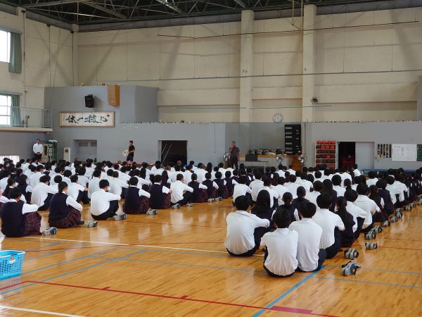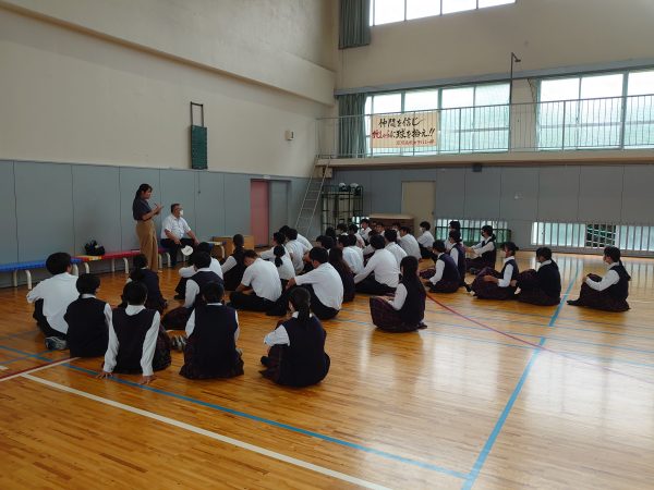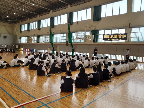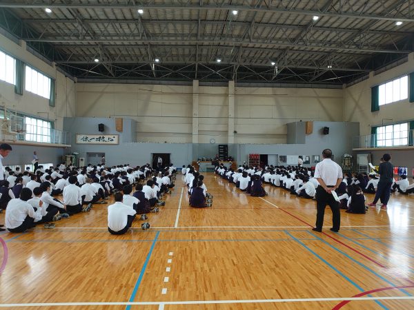2学期は体育祭や修学旅行など大きな行事が続くことから、集合の練習や集団で行動する大切さなどの話しがありました。