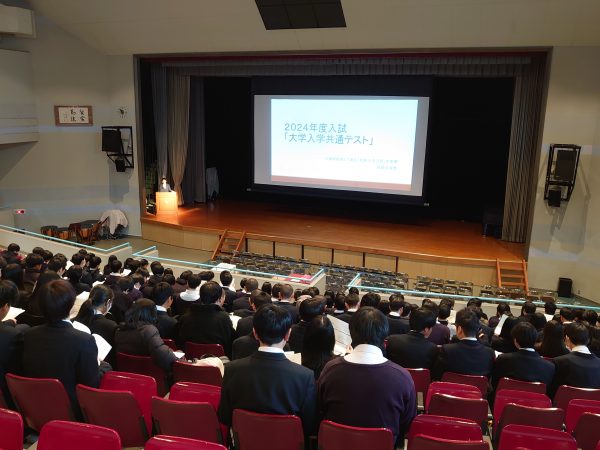 大学入学共通テストを明日に控え、受験する3年生を対象にした説明会が行われました。