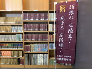 進路指導部でも、受験生にエールを送りたいと思い、共通テスト・一般入試を受験する生徒が学習するメディアセンターに、広陵高校特製応援幟を設置しました。