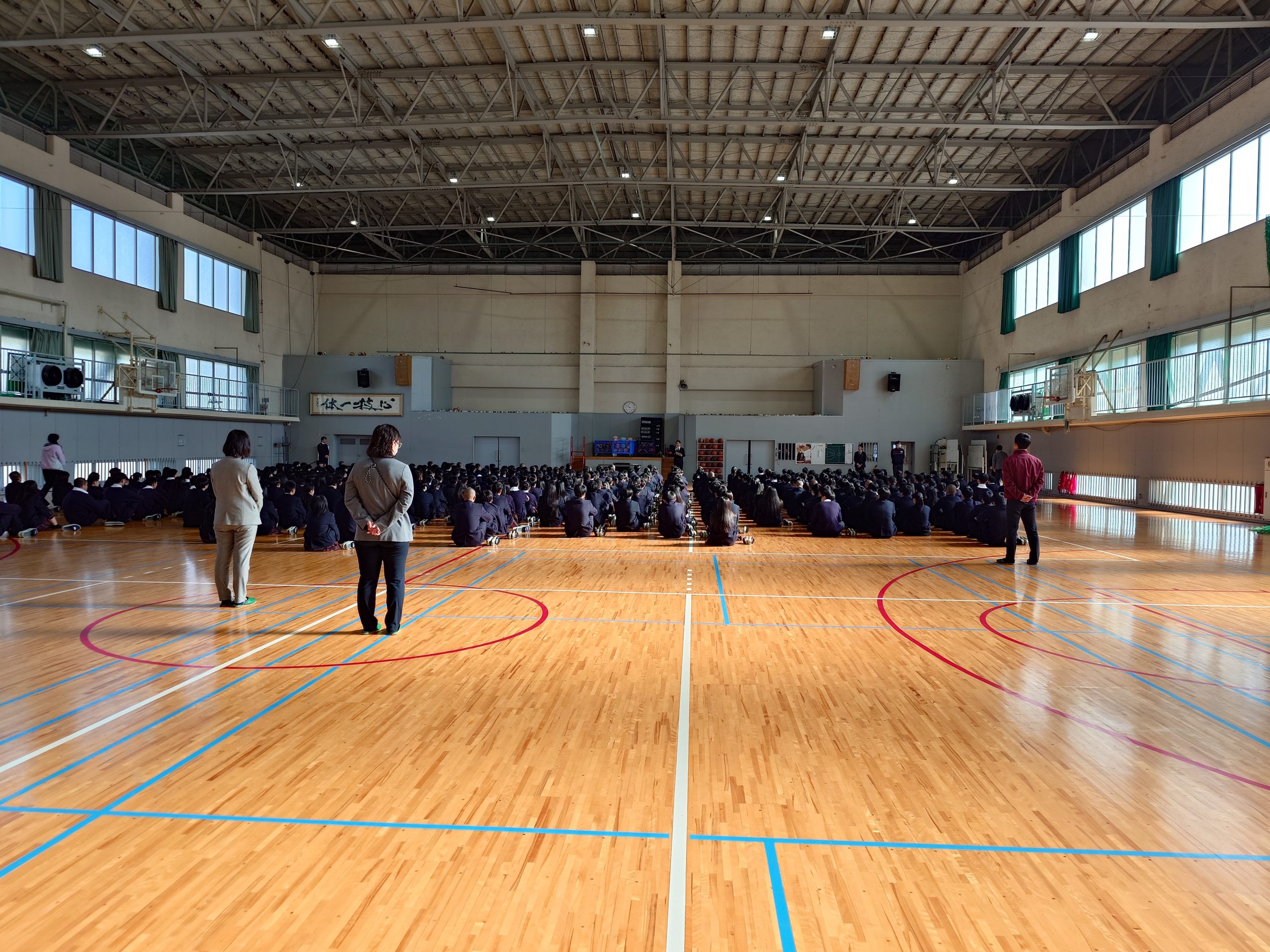 校内オリエンテーション最終日の13日は、服育教育を講堂にて行いました。