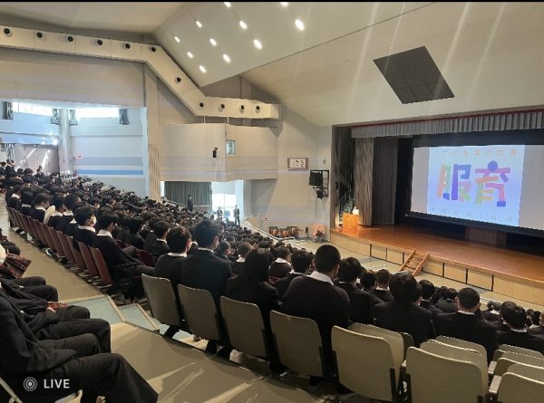 校内オリエンテーション最終日の13日は、服育教育を講堂にて行いました。