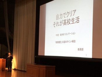 午後からは講堂に移動し、学校生活について、各分掌部長の先生よりお話がありました。