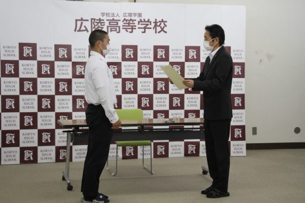 まずはこの1学期に生徒の皆さんが感染防止対策に協力してくれたことに感謝の思いを述べられ、緊急事態宣言の影響で広陵祭を中止する決断をせざるを得なかったことに関してお詫びされました。