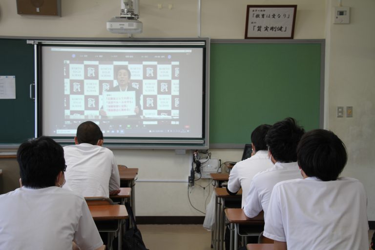 まずはこの1学期に生徒の皆さんが感染防止対策に協力してくれたことに感謝の思いを述べられ、緊急事態宣言の影響で広陵祭を中止する決断をせざるを得なかったことに関してお詫びされました。