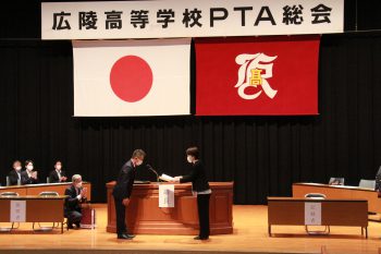 PTA総会では各種議事や報告が行われ、新しい役員の選出や、旧役員の表彰がありました。