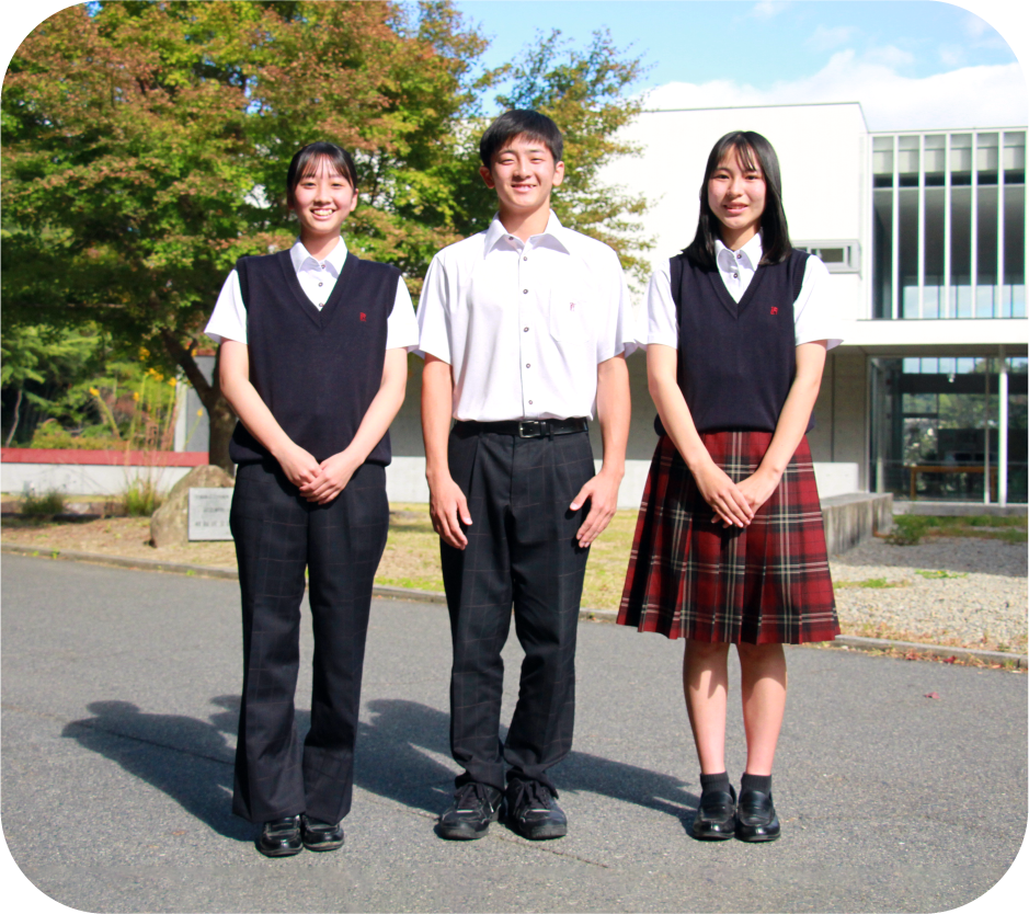 2021年から生徒のニーズにこたえるため、女子用スラックスも加わりました。自転車通学、防寒など機能性を重視。選択の幅を広げました。